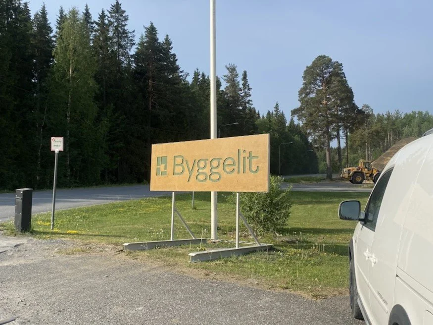 Vår fina skylt som huserar utanför fabriken i Lit, har vi självklart gjort själva. Saknar ert företag er logotyp på fasaden? Hör av er så tar vi fram ett förslag.